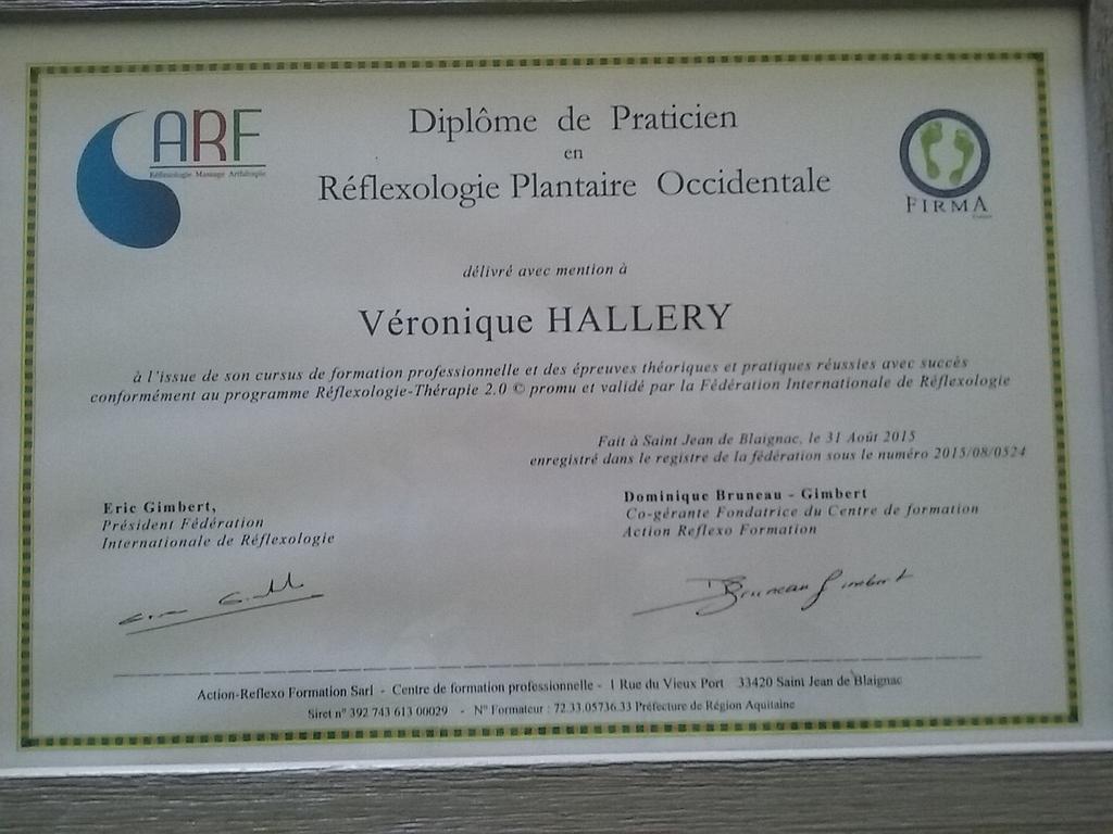 Diplôme réflexologie - Hallery Véronique - Pontault-Combault
